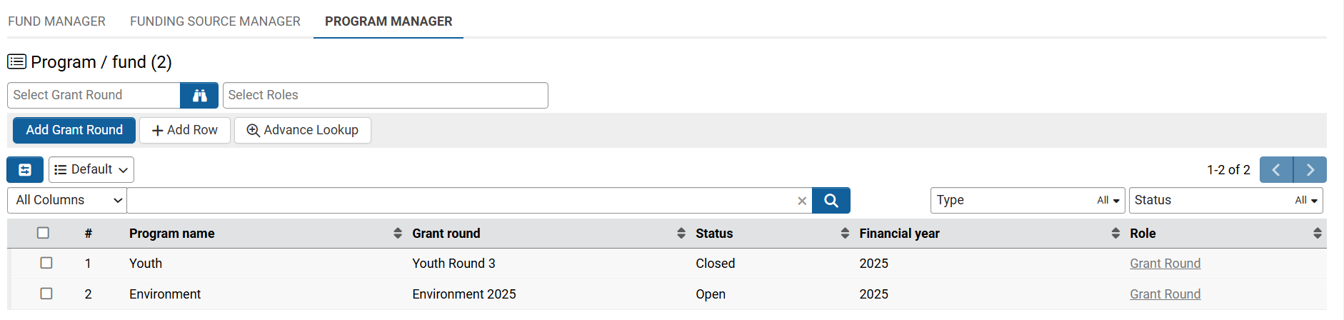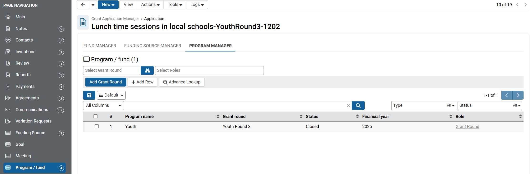 - Find the grant round that you want to move the application to and select the 'Add Grant Round' button. You will now have 2 grant rounds.